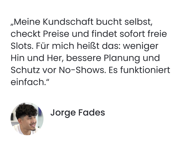 Deine Kundschaft sieht jederzeit, wann du verfügbar bist und kann rund um die Uhr buchen. Füge deine Leistungen, dein Portfolio und Bewertungen hinzu, damit neue und bestehende Kundschaft mit gutem Gefühl bei dir bucht.